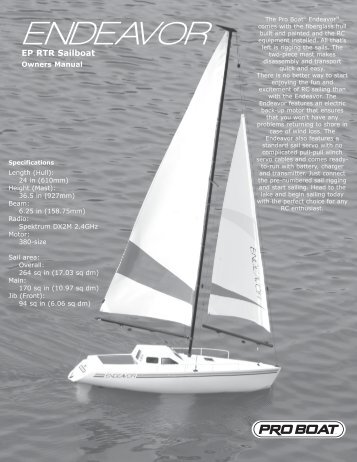 Proboat endeavor ep owner' manual pdf download., View and download proboat endeavor ep owner's manual online. endeavor ep toy pdf manual download. pro boat mini-v ready-to-run boat ep ready-to-run sailboat.. Proboat pro boat endeavor rc sailboat battery ebay, Find best value and selection for your proboat pro boat endeavor rc sailboat battery search on ebay. world's leading marketplace.. Pro boat endeavor sailboat ep rtr - xenonproject., The pro boat endeavor™ sailboat sailboat pro boat lineup offer benefit electric backup motor case sudden wind loss.. The Pro Boat Endeavor™ Sailboat is the first and only sailboat within the Pro Boat lineup to offer the benefit of an electric backup motor in case of sudden wind loss. Endeavor sailboat ep rtr (prb2450): hangar-9, Endeavor sailboat ep rtr pro boat endeavor™ sailboat sailboat pro boat lineup offer benefit . Endeavor Sailboat EP RTR The Pro Boat Endeavor™ Sailboat is the first and only sailboat within the Pro Boat lineup to offer the benefit of an Endeavor sailboat ep rtr horizonhobby, Endeavor sailboat ep rtr (prb2450) pro boat endeavor™ sailboat sailboat pro boat lineup offer benefit . Endeavor Sailboat EP RTR (PRB2450) The Pro Boat Endeavor™ Sailboat is the first and only sailboat within the Pro Boat lineup to offer the benefit of an